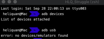 家里的 MBP 静静地躺了一段时间,某天心血来潮想嗨起来,其实就是瞎折腾一把,结果就是 Android Studio 不识别设备了。???