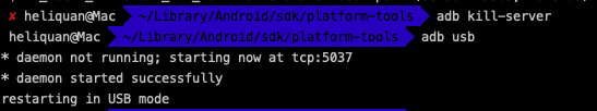 键入 adb usb 重新开启 usb 监听,也就是调试