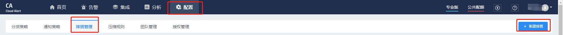 在Cloud Alert界面中,点击配置-排版管理-新建排班