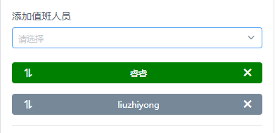 在已有团队成员中,选择值班人员,并且支持拖动成员,改变成员值班顺序,也可以点击成员右侧删除按钮,将成员从排班中删除