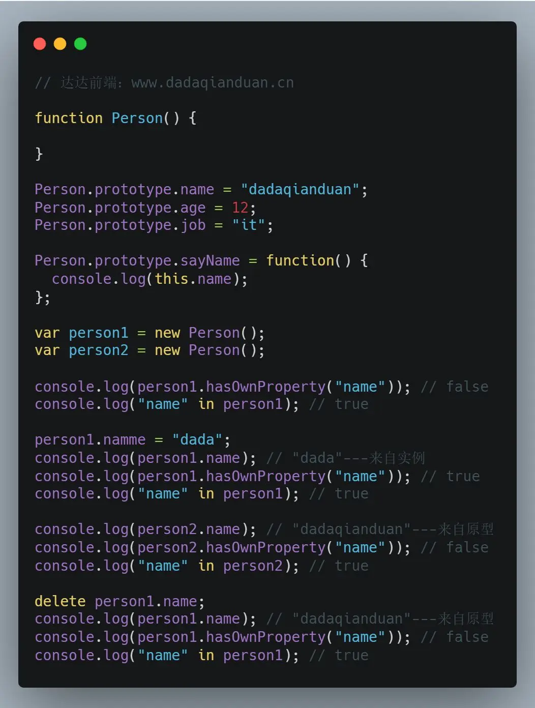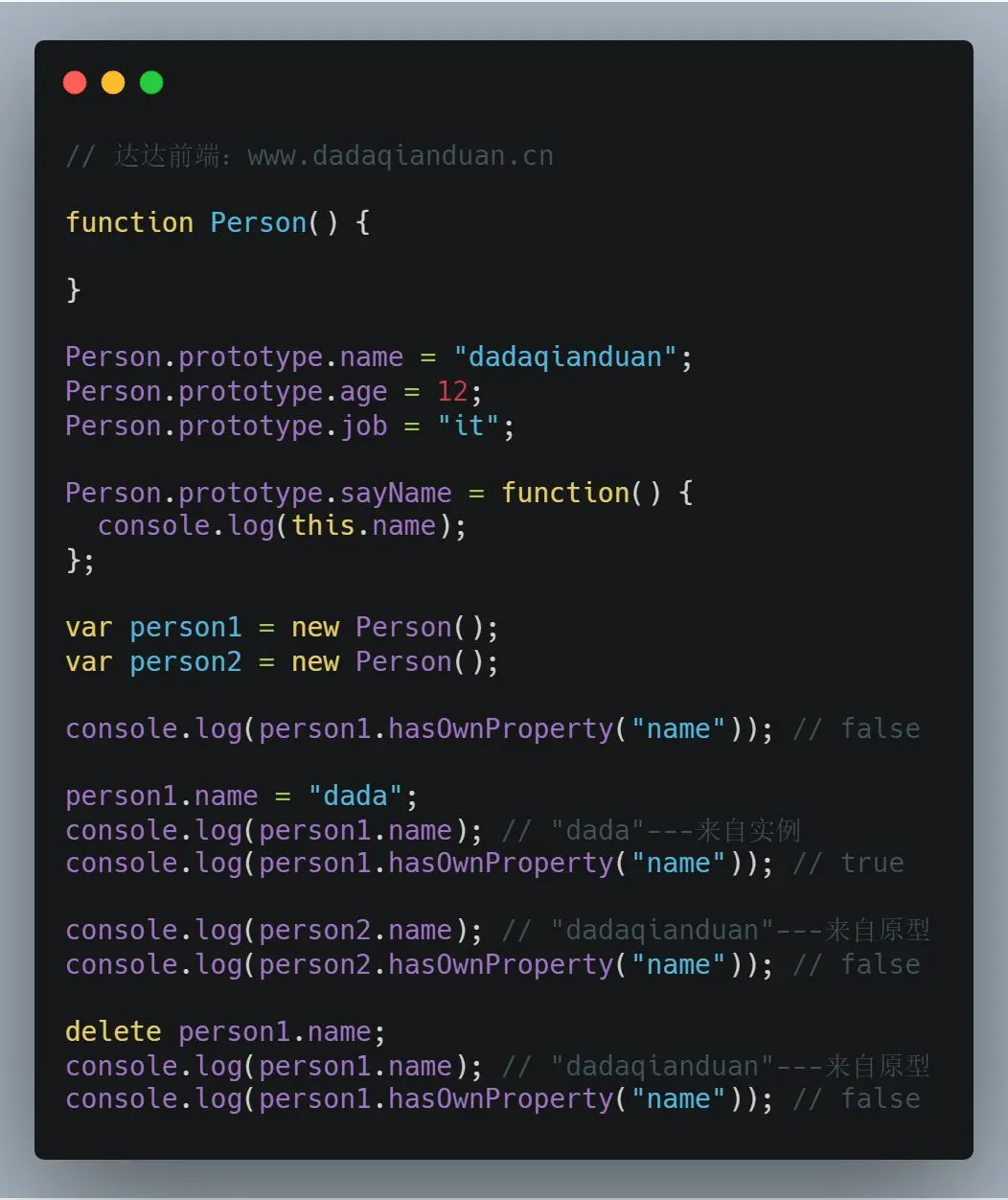 示例:Person.protype.constructor指向Person。