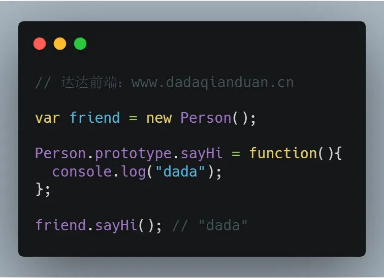 friend.sayHi()调用可以进行访问。原因是实例与原型之间的松散连接的关系。实例与原型之间的连接只不过是一个指针,而不是一个副本,所以可以在原型中找到该想要的属性并返回保存在那里的函数。