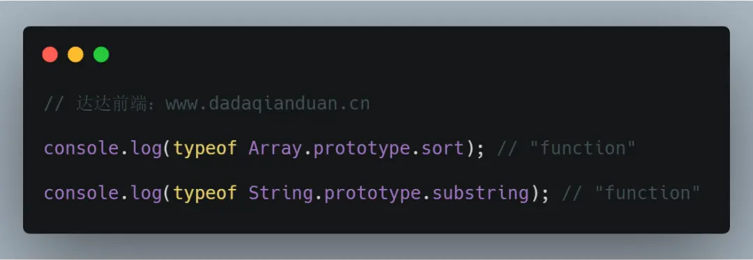 可以在Array.prototype中找到sort()方法,在Sting.prototype中可以找到substring()方法。