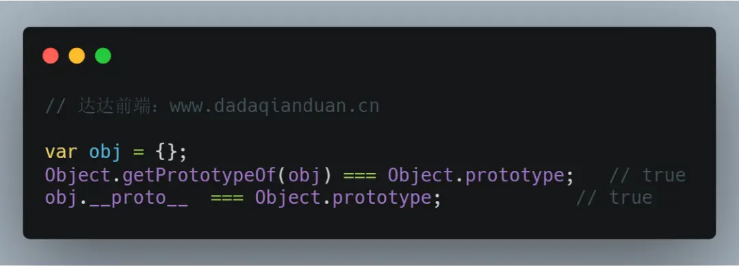 通过字面量方式创建对象时,它的原型就是Object.prototype,我们无法直接访问内置属性[[Prototype]],但是我们可以通过