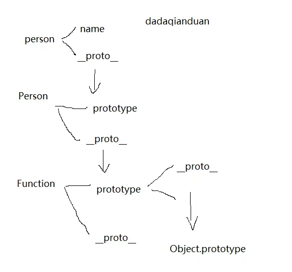 一个Person构造函数有一个prototype。指向了原型对象,Person Prototype。