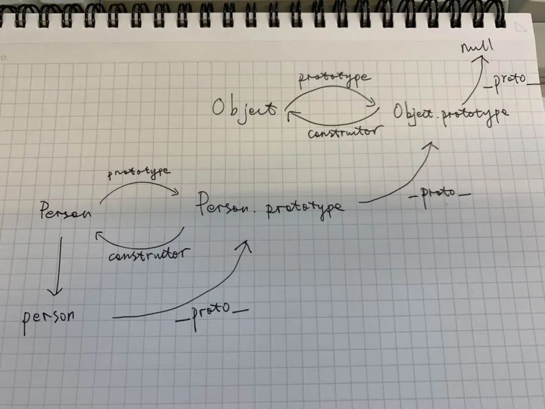 函数Person(对象)有一个属性prototype指针,指向原型对象,Person.prototype原型对象,实质也是对象,它有个属性constructor指针,又指向Person函数对象。