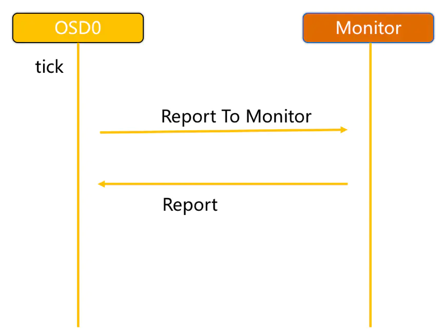 - 收到来自failure_queue或者failure_pending中的OSD的心跳时,将其从两个队列中移除,并告知Monitor取消之前的失效报告。