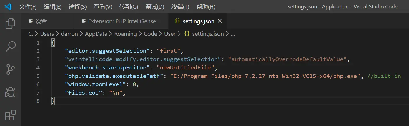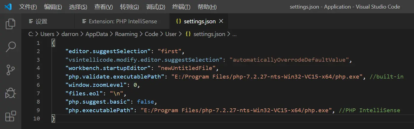 - php.validate.executablePath是vscode默认写PHP需要的。