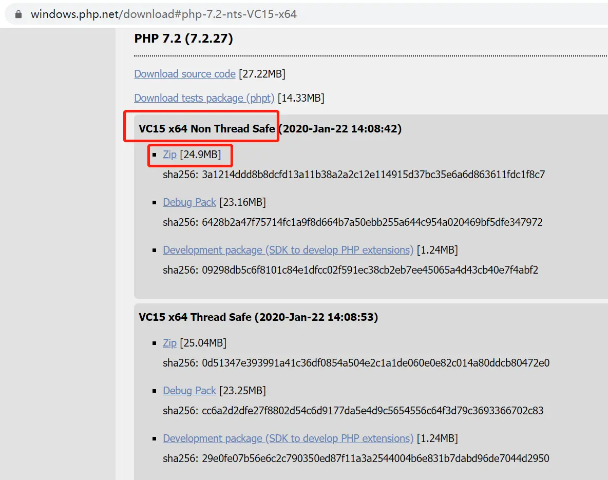 打开这个地址后,会看到windows版本的php有线程安全版和非线程安全版。简单来讲,线程安全版是配合apache用的,非线程安全版是配合nginx用的。我只是用来配合vscode本地使用,版本差异对我来说影响不大。