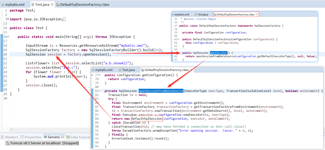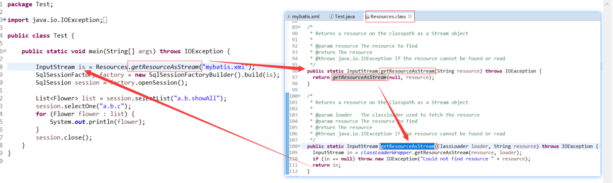 - Resources调用静态方法getResouceAsStream来解析mybatis.xml文件,得到InputStream