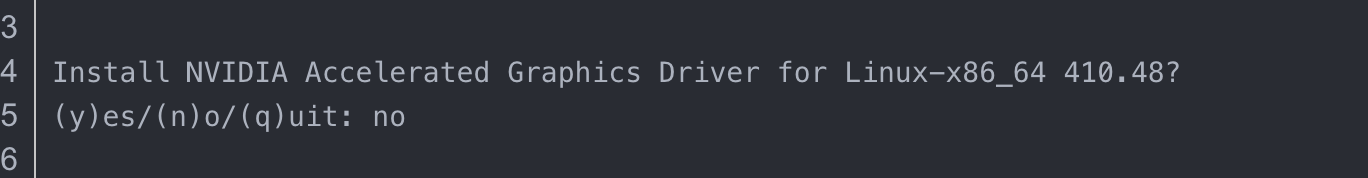 如果是使用run文件安装的,是如下画面。选择no(推荐使用 run 格式的cuda,这样可以看到详细的安装信息)