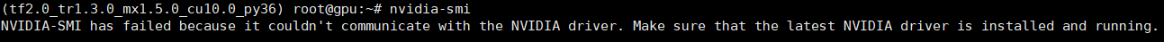 在ubuntu18.04上安装了NVIDIA驱动。结果安装好之后部署完项目准备启动时却意外发现驱动挂掉了。报错: