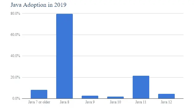 这个调查显示,使用Java 8的公司和程序员高达80%, 这是为什么呢?大家为什么不升级到Java 11呢?