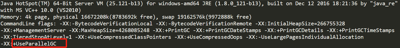 可以看到默认使用的是ParallelGC