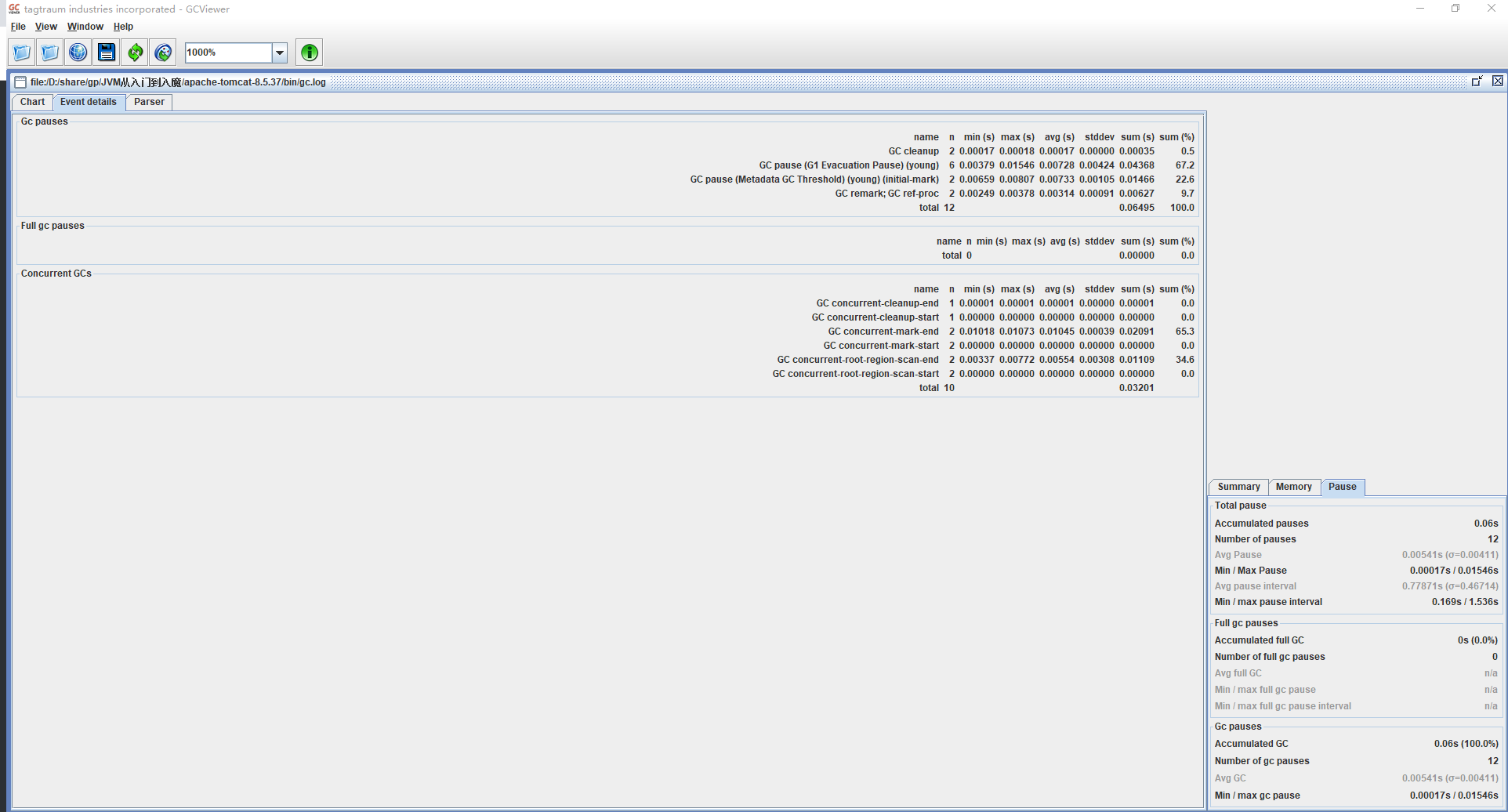 修改配置参数,获取到gc日志,使用GCViewer分析吞吐量和响应时间