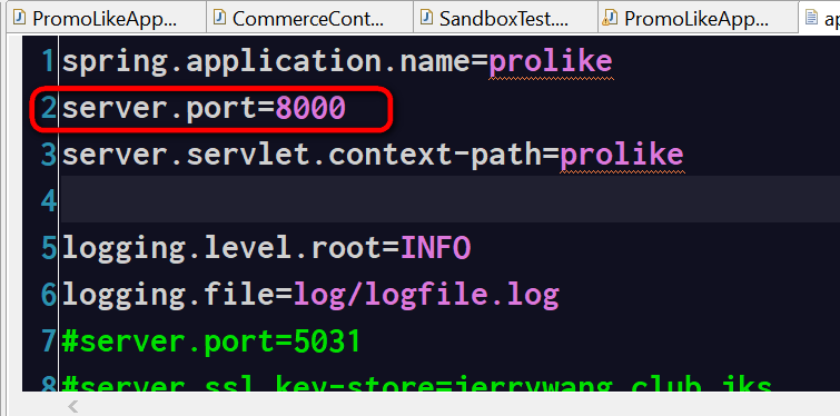 在SpringBoot项目内部的Application.properties文件设置成8000: