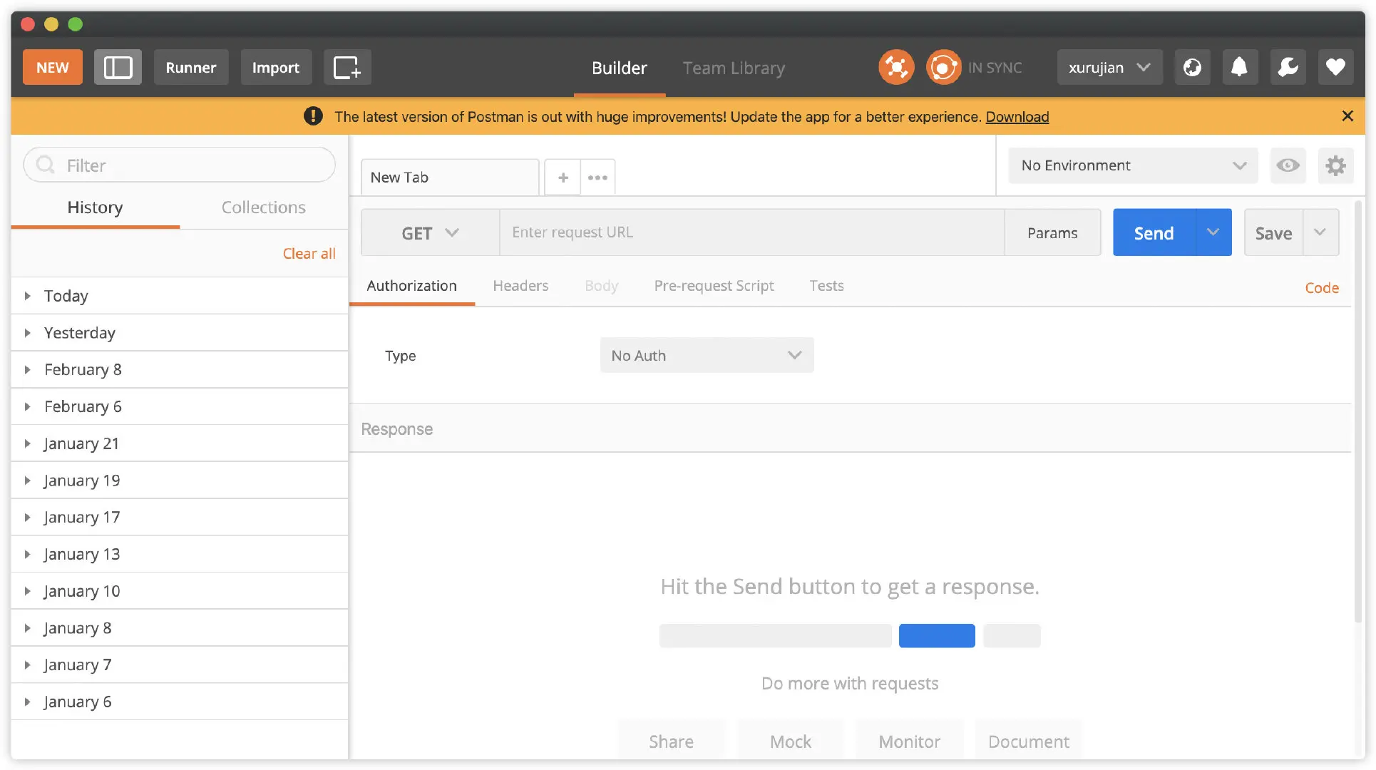 postwoman 无需下载客户端应用,只要使用浏览器打开 postwoman.io,就可以体验。另外可以安装 PWA 应用,离线也可以使用。