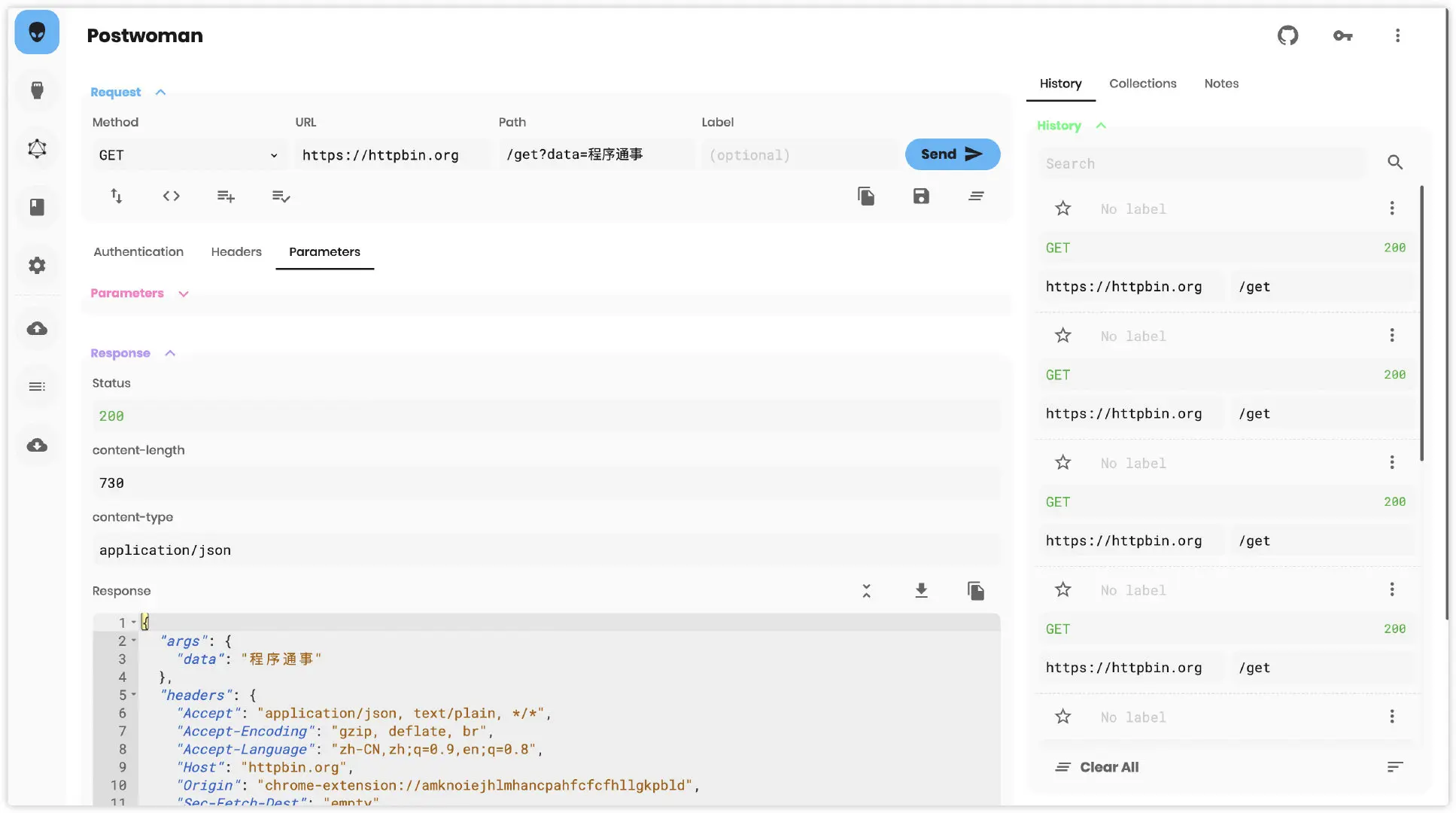 如果你以前没用过 Postman,那也没关系。postwoman 自带运行 demo,很快可以上手。