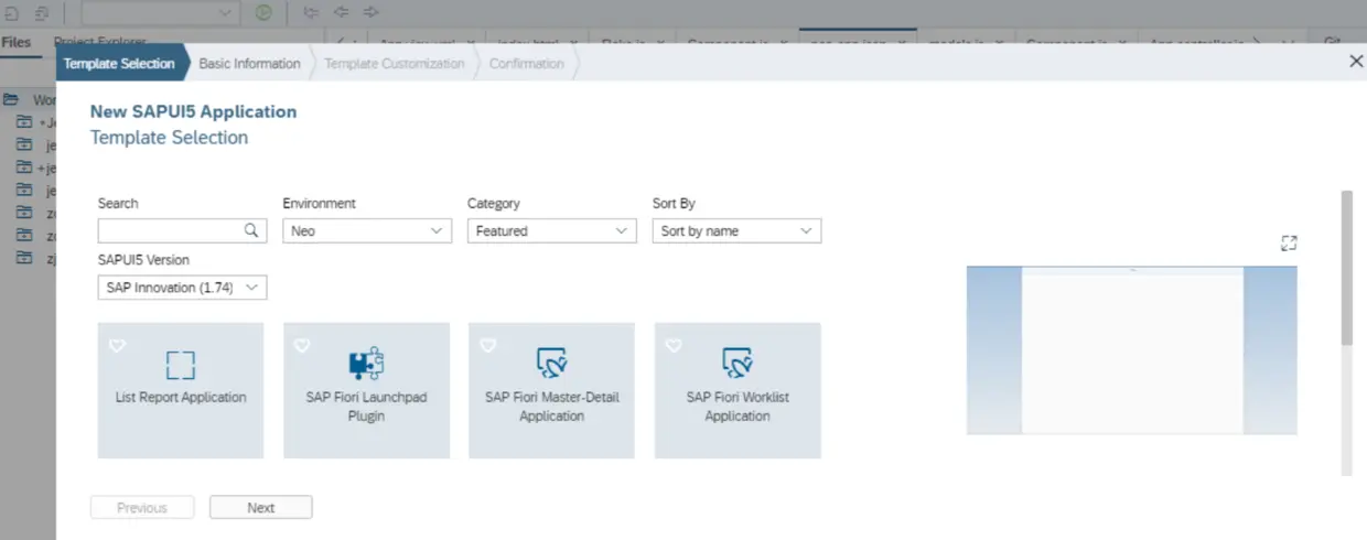 打开SAP云平台的WebIDE,新建一个项目,基于template创建一个SAP UI5应用: