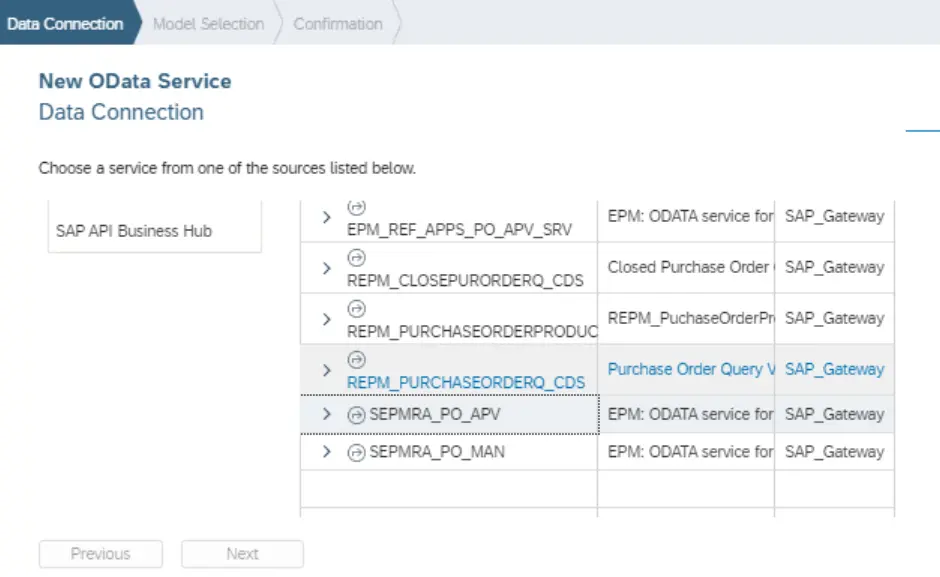 选择采购订单OData服务: