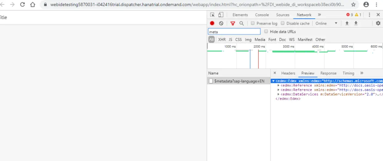 在Chrome开发者工具里看到OData服务的metadata已经可以成功取回了: