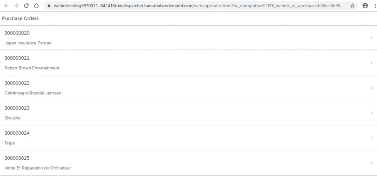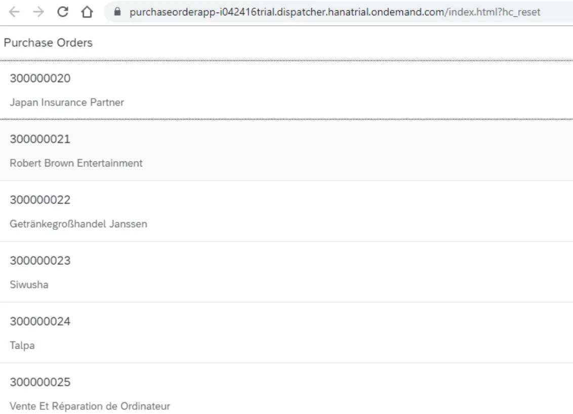 <List noDataText="No purchase orders found" items="{/PurchaseOrders}">