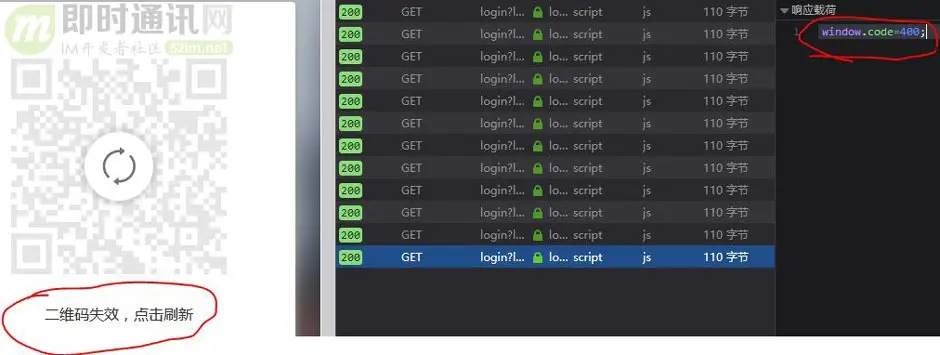 微信网页端扫码登录时,轮询的数据返回采用的是JSONP的形式,这是为了解决跨域问题。
