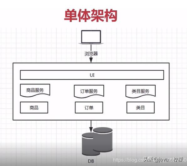 ==(3) 微服务的优缺点==1.单体架构单体架构另一种架构风格,比较原始的架构。将所有功能都部署在一个web容器中运行的系统。项目打包后,所有服务都在同一个war包中,部署在一个web容器中,共用一个数据库