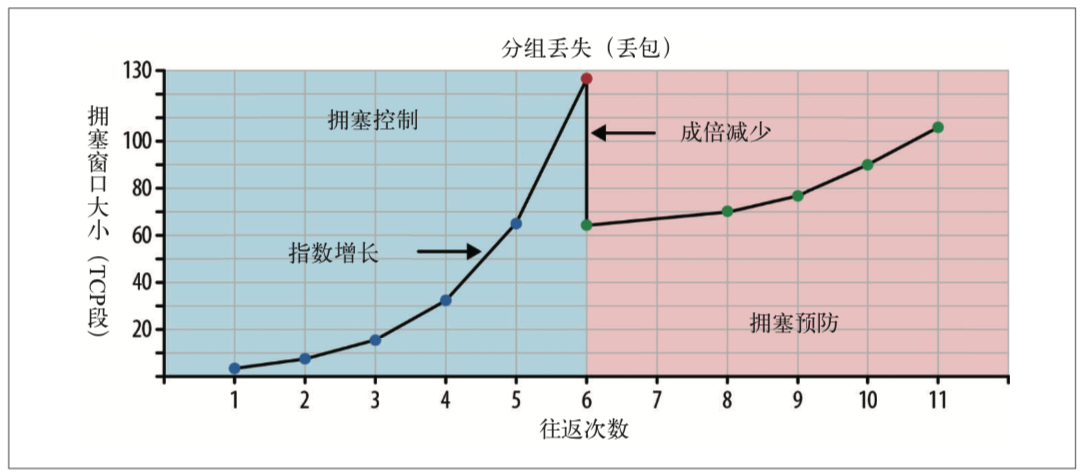 相反,我们要从一个相对较小的拥塞窗口开始,每次往返都令其翻倍(指数式增长)。