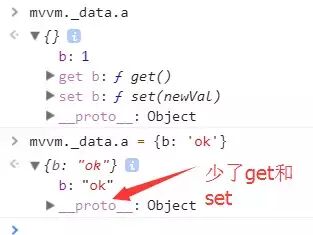还是在可爱的控制台上,敲下这么一段代码 mvvm._data.a = {b:'ok'}