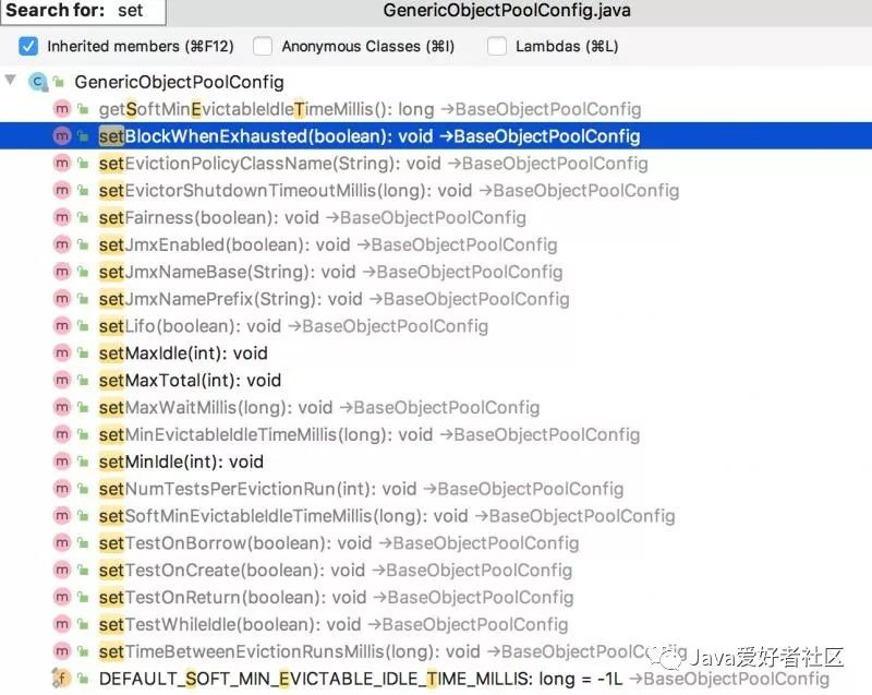 在 GenericObjectPoolConfig 和 BaseObjectPoolConfig 配置类对外提供的 setter 方法便是配置参数,并且代码里都有详细的注释说明。