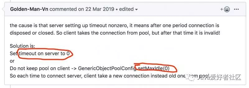 不过他因此这么改,分析的原因是对的,就是一根连接被Redis给断开了,客户端还拿着在那使用呢,能不出问题嘛。
