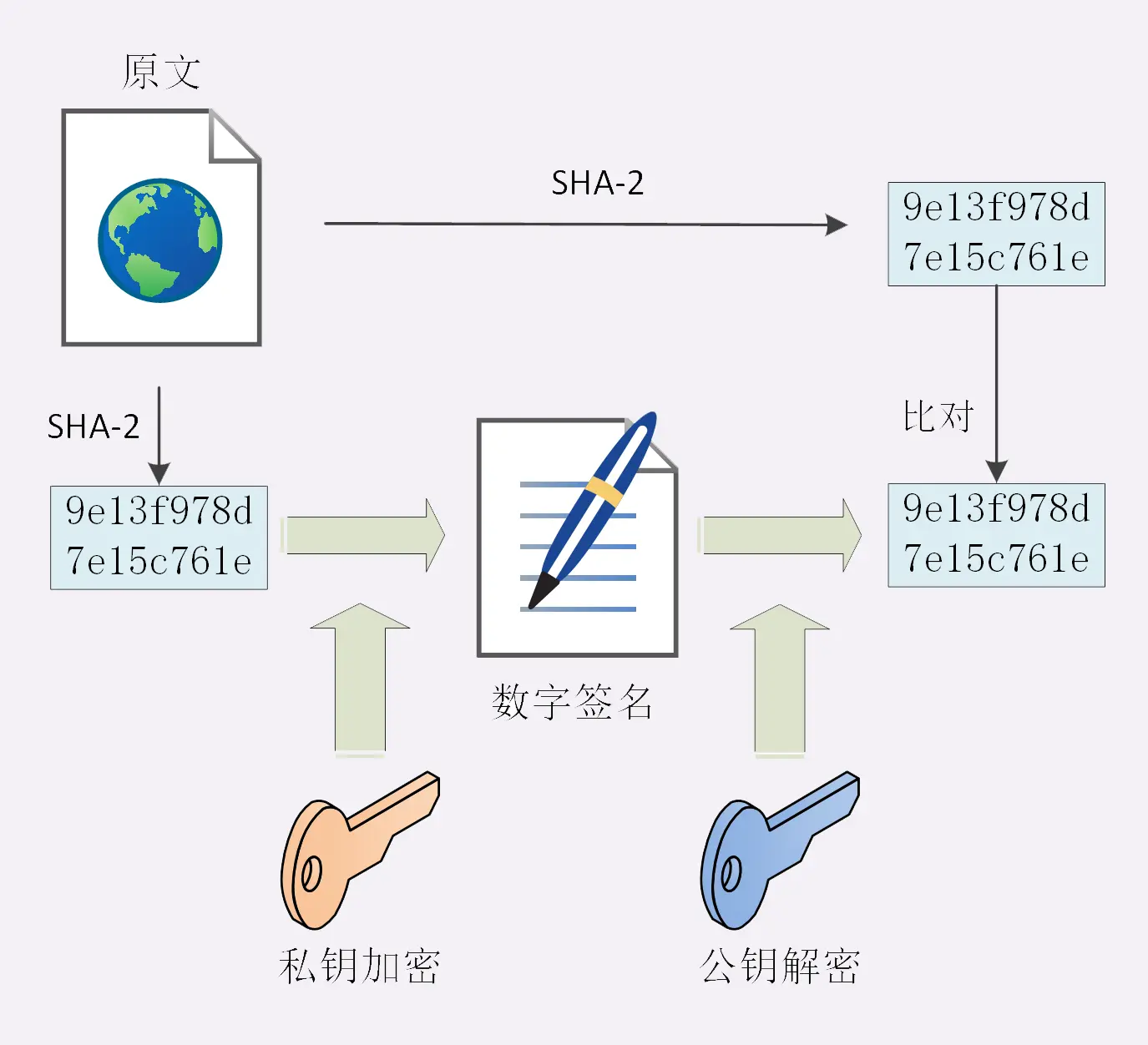 如果黑客在中间哪怕改动了一个标点符号,摘要也会完全不同,网站计算比对就会发现消息被窜改,是不可信的。