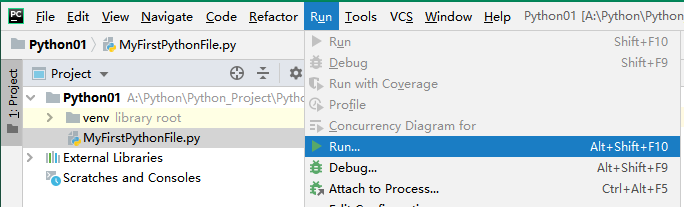 10. 正确输入完成后,点击Run -> Run... -> 自己要运行的文件名