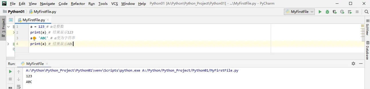 a = 123 # a是整数
