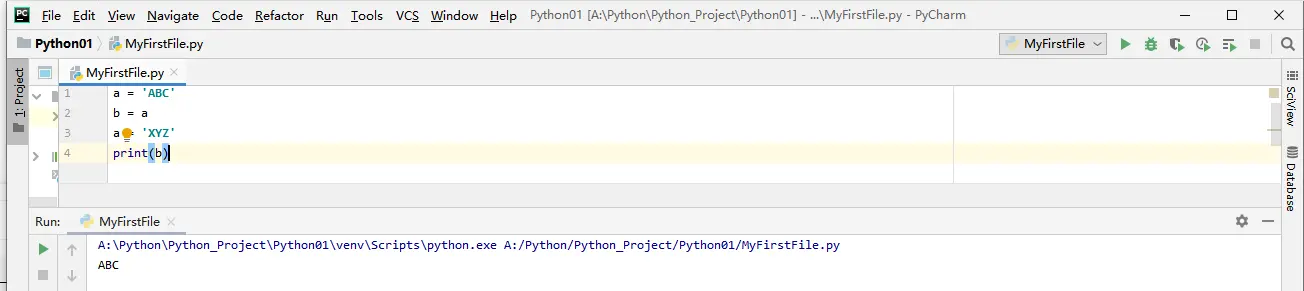 a = 'ABC' # a变为字符串