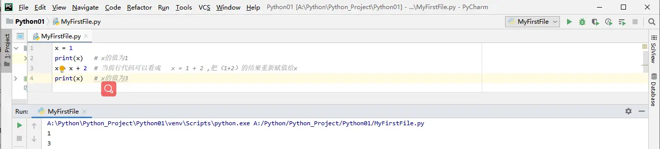 print(x) # x的值为3