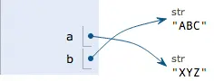 a = XYZ,解释器创建了字符串XYZ,并把a的指向改为XYZ,但b并没有影响