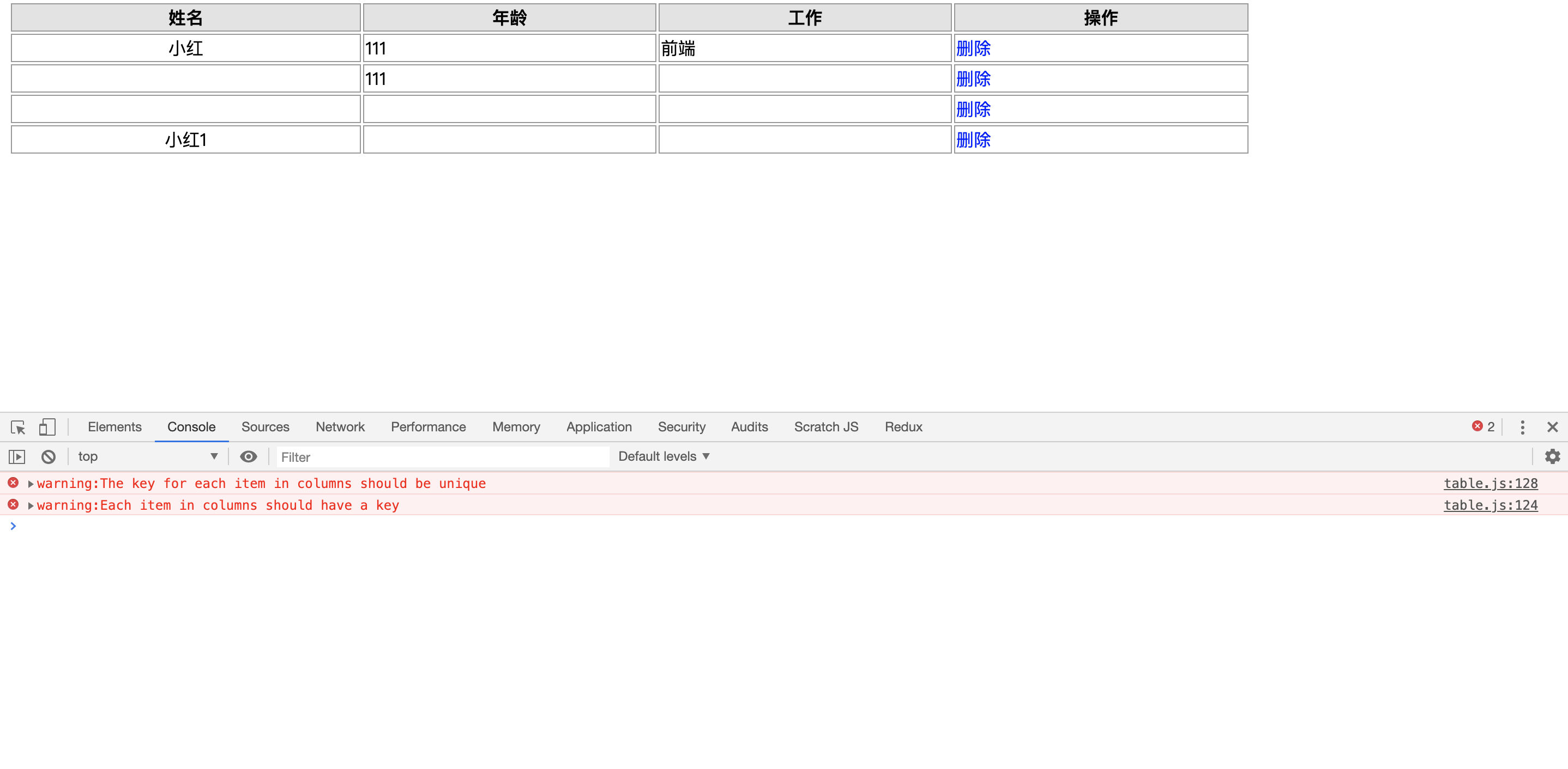 columns数据中key值的检查,没有或者重复,给出警告。columns中width可设置列宽columns中align值控制内容在表格中所处的位置。