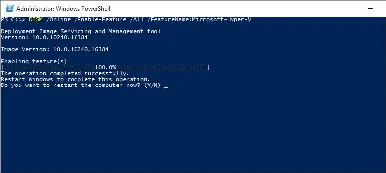 PowerShell DISM /Online /Enable-Feature /All /FeatureName:Microsoft-Hyper-V