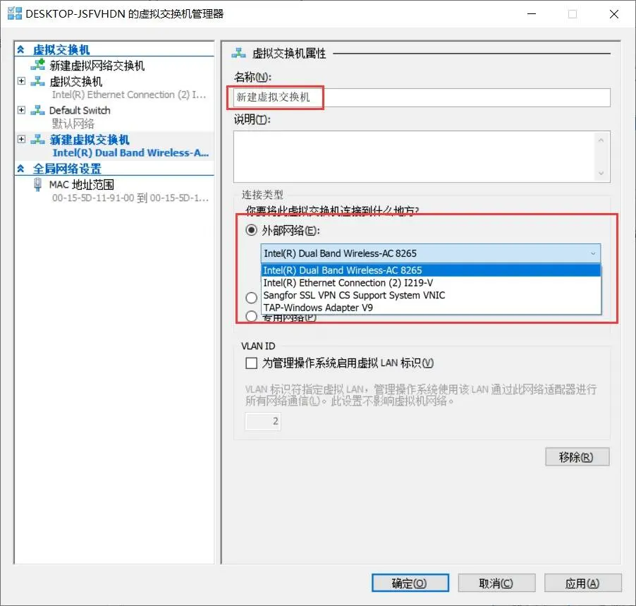 点击右侧的"虚拟交换机管理器",弹出虚拟交换机管理窗口: