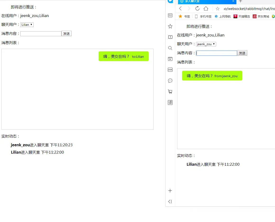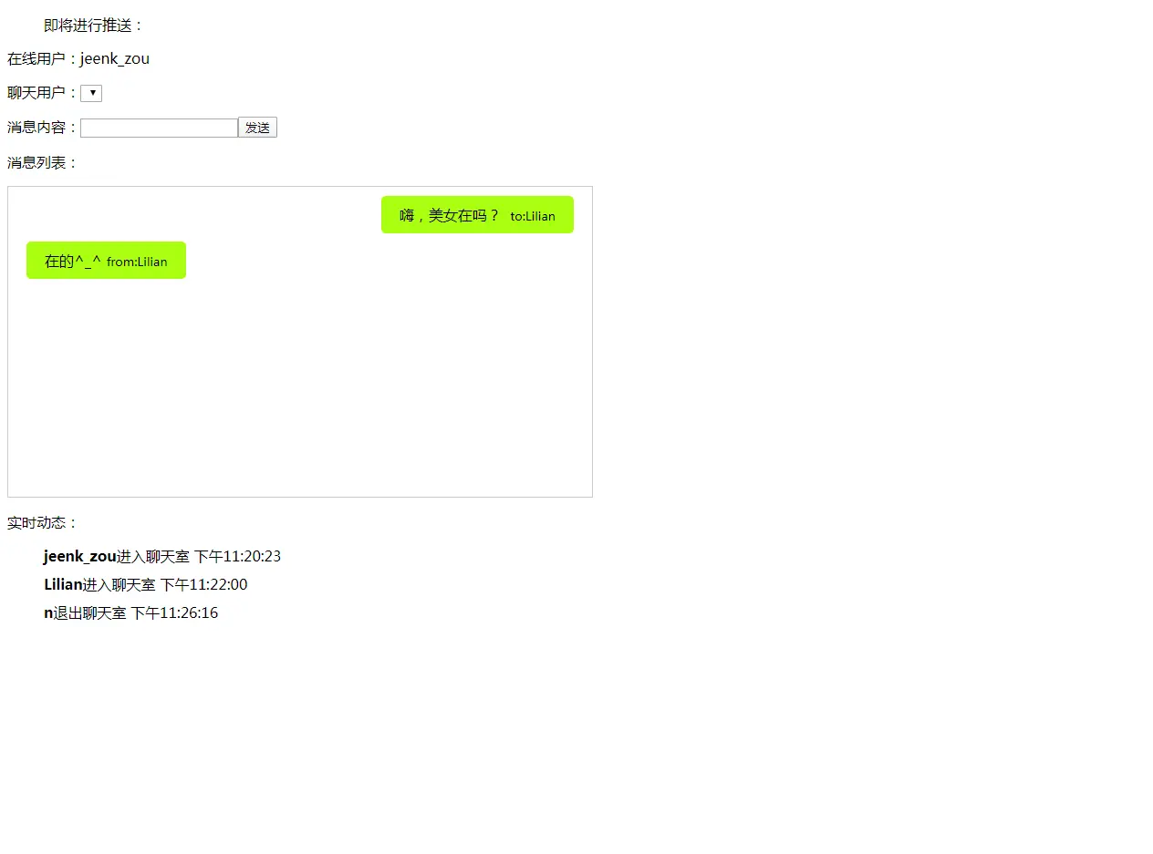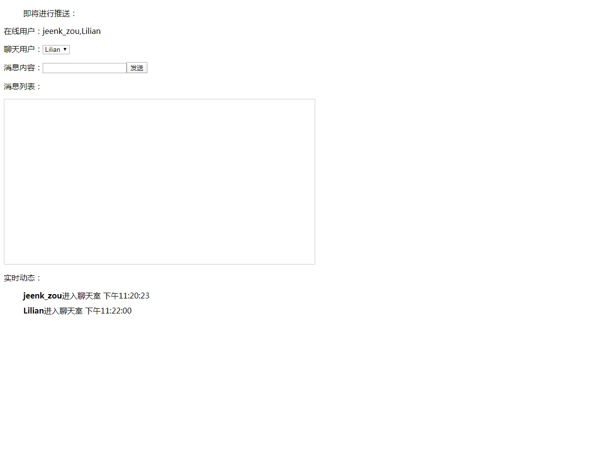 <p>消息内容:<input type="text" id="message"><button type="button" id="send">发送</button></p>