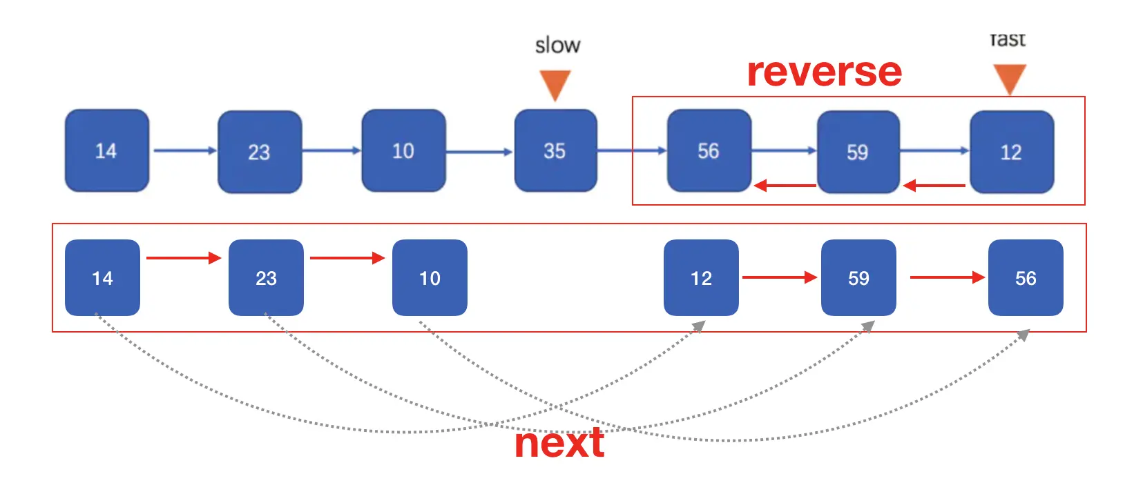 var rev = reverseList(slow);