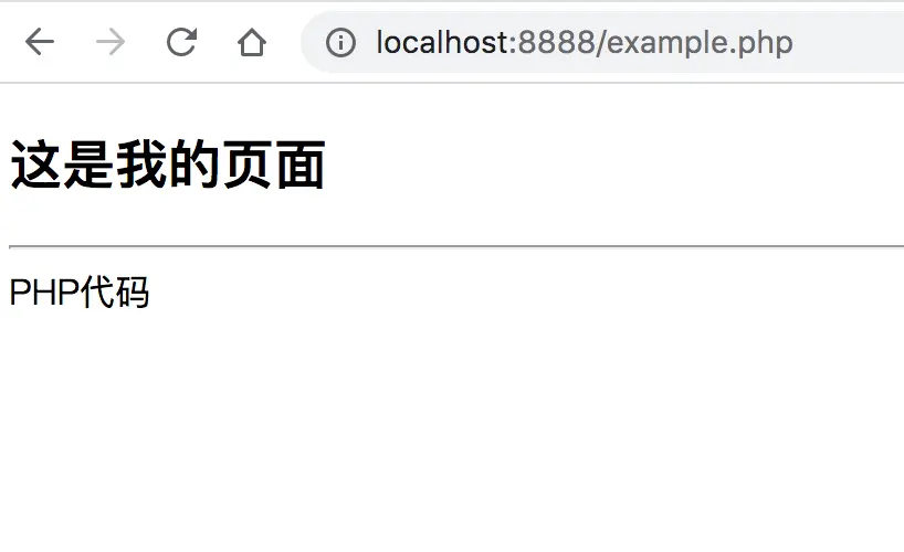 保存到web运行根目录,用浏览器中访问:http://localhost:8888/example.html,可以看到结果如下,PHP的内容并未显示:
