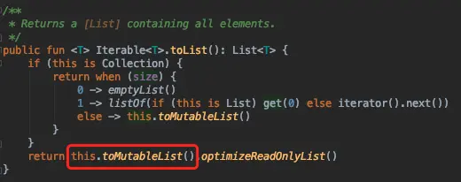 刚好在写代码的我,随手点开了 toList() 的源码: