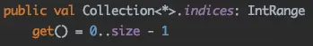 噢,indices是一个扩展属性,值为:0..size - 1,一个范围(Range),比如现在有5个元素,这个值就是:0..(5-1) → 0..4,你可以简单地把Range看成一个List(列表),那么这里的 循环条件 就变成了:遍历这个范围,所以