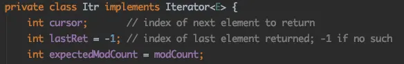 接着,到expectedModCount,定位到内部类 Itr: