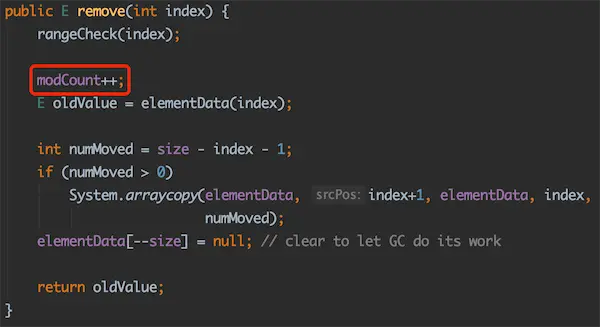 到此,我们知道了modCount →「会在ArrayList的结构发生变化时变化」