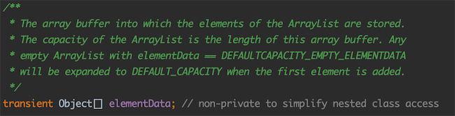 噢,就是一个缓存数组,长度为列表的容量,当第一个元素添加进来,会扩展至DEFAULT_CAPACITY: