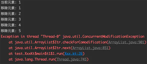 行吧,抛异常了,那有在多线程的时候有什么办法规避呢?换个线程安全的容器,比如:Vector?